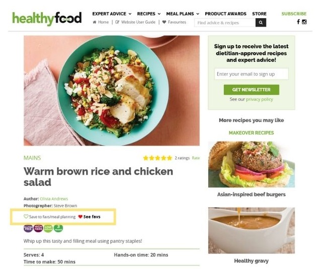 The healthyfood.com website is with you on your health journey. Your subscription to healthyfood.com gives you full and exclusive access to accurate, science-based advice and information about healthy eating and health conditions which may be affected by diet. Additionally, we have over 4000 delicious recipes packed with nutrition for you to discover for your next meal inspiration!