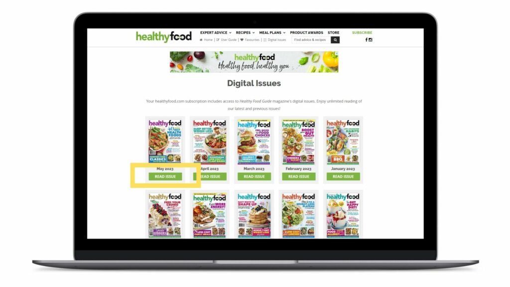 Did you know that you can unlock unlimited access to Healthy Food Guide magazine’s digital issues? Select or upgrade to our “Web + Digital” plan when you subscribe to enjoy unlimited reading of our latest and previous issues. Once you’re logged in, you can easily enjoy this feature by clicking on Digital Issues on the menu bar.